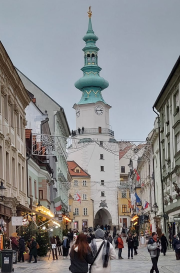 Bei einem geführten Spaziergang durch den historischen, vorweihnachtlich geschmückten Stadtkern entdeckte die Gruppe eindrucksvolle Gebäude wie etwa den Martinsdom, die Bürgerhäuser der Renaissance, barocke Paläste sowie das Michaelertor. Auf dem Hlavné námestie (Hauptplatz) befindet sich das Alte Rathaus und vor ihm steht der Maximiliansbrunnen. Die mittelalterlichen Gassen führten vorbei an der Oper, dem Ganymedes- Brunnen und der Reduta.