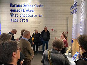Nach der Ankunft in Köln wurde zunächst im Dorint Hotel am Heumarkt für die kommende Nacht eingecheckt, bevor eine Führung im Schokoladenmuseum die Teilnehmenden auf eine genussvolle „Reise“ durch die Geschichte von Kakao und Schokolade mitnahm – von den Ursprüngen vor über 5000 Jahren bis in die moderne Schokoladenproduktion von heute (Fotos, c: M. Schneider).